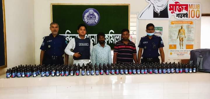 পুলিশ জানায়,চান্দিনা থানার ওসি মোহাম্মদ আরিফুর রহমানের দিক নির্দেশনায় এসআই জালাল উদ্দিন সঙ্গীয় ফোর্সসহ গোপন সংবাদের ভিত্তিতে বিশেষ অভিযানে ঢাকা-চট্টগ্রাম মহাসড়কের চান্দিনা পালকি সিনেমা হলের সামনে থেকে ওই দুই মাদক কারবারিকে আটক করে।এসময় তাদের দেহ তল্লাশি করে কিছু না পেয়ে তাদের হেফাজতে থাকা পিকআপ গাড়ির পিছনে থাকা ঢালার মধ্যে দুইটি ট্রাভেলিং ব্যাগের ভিতর হতে ২৭৯ বোতল ফেনসিডিল উদ্ধার পূর্বক জব্দ করা হয়।
