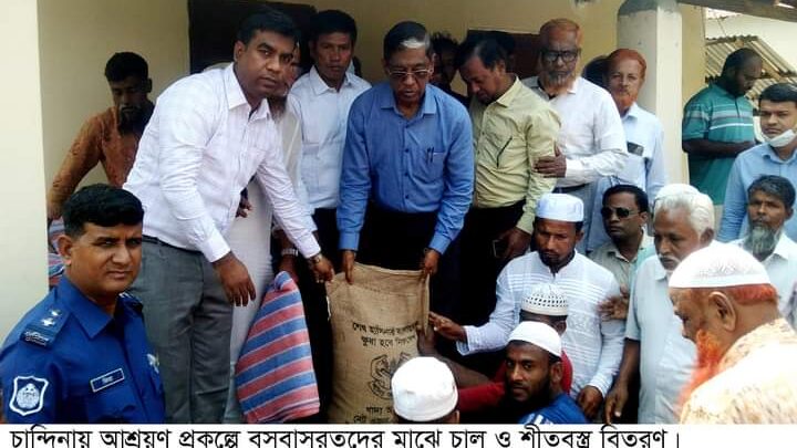 চান্দিনায় আশ্রয়ণ প্রকল্পের বাসিন্দাদের মাঝে চাল ও শীতবস্ত্র বিতরণ