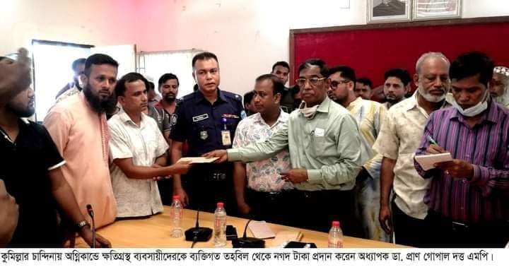 কুমিল্লার চান্দিনা বাজারে ভয়াবহ অগ্নিকান্ডে ক্ষতিগ্রস্থ ব্যবসায়ীদের নগদ আর্থিক সহায়তা প্রদান করা হয়েছে।